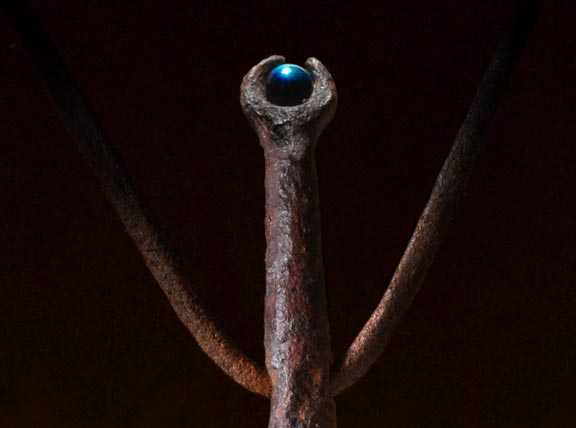 Iron bridle part, forged iron wire, crushed tin cans, car dashboard control